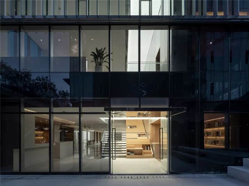 In terms of materials processing, wood andterrazzo with natural texture are selected. The white plastered walls and brownwooden floors and window frames on the fourth and fifth floors are perfectlymatched with the greenery of the atrium, creating a comfortable and cozy officeatmosphere. The basement floor and the first floor are mainly spaces forcommunication and display and have a strong public nature. Therefore, a largenumber of anodized aluminum plate is used on the wall surfaces. The blurred andpolished anodized aluminum materials on the surface can create a sense of thefuture similar to mirror finished stainless steel, however, it is not so coldas that, but a little humane warm feeling. In addition, the makeup of the woodprovides the space with a warm and comfortable feeling.