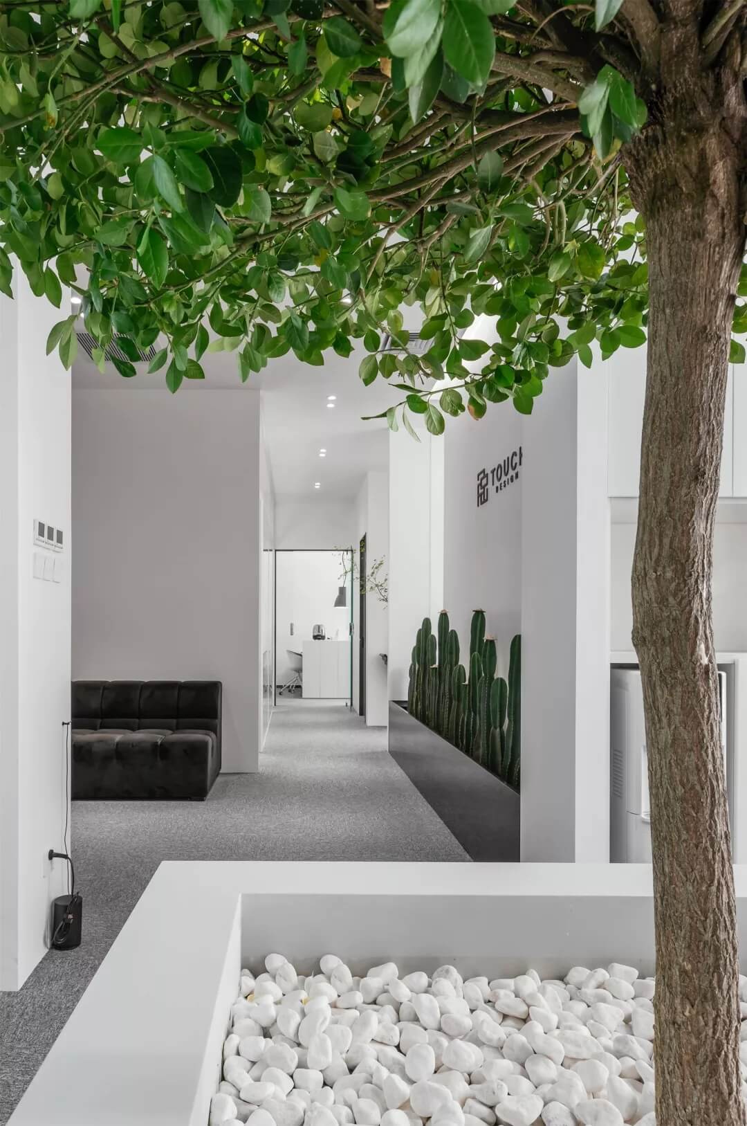 觸覺(jué)設(shè)計(jì)巧妙擷取文化于當(dāng)代都會(huì)空間,展現(xiàn)出雅致韻味的同時(shí)留下了更多觸碰的余地。綠植來(lái)點(diǎn)亮辦公場(chǎng)所的鮮活生命力,清逸的色彩是思想游龍的軌跡,在留白的空間中伸出觸角,觸覺(jué)所及之處,思維綻放遐想。
