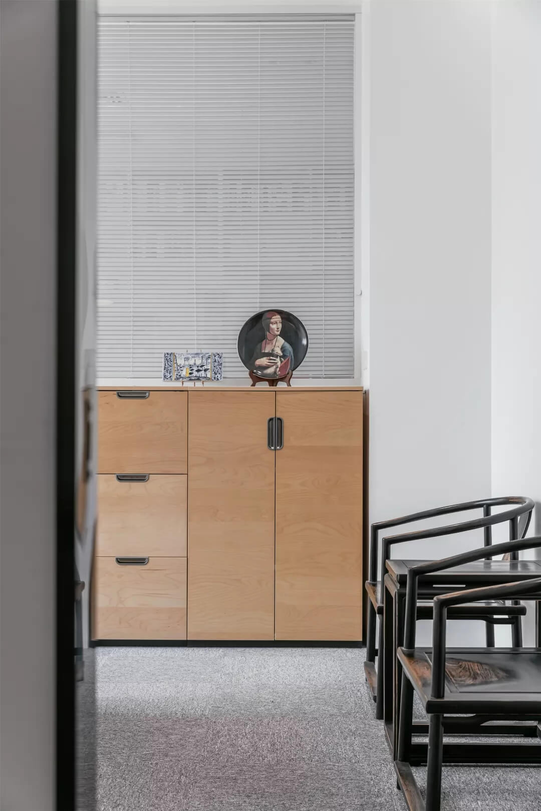 自由無(wú)拘的溝通對(duì)于團(tuán)隊(duì)的創(chuàng)新至關(guān)重要。開(kāi)放的辦公區(qū)是有效獲取信息和激發(fā)靈感的地方。百葉窗折射的光影,充足的自然光營(yíng)造高效的工作環(huán)境??臻g雖然有限,但發(fā)揮最大的性能,開(kāi)辟出一整面的軟裝材料搭配區(qū)。