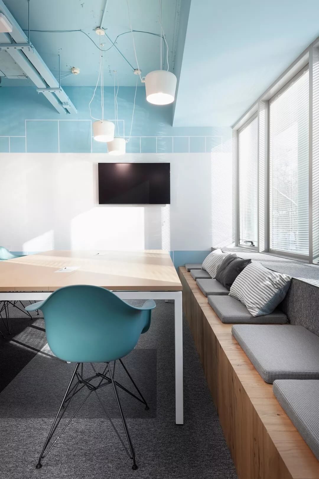 “位于保加利亞三層樓的新金融時報辦公樓,是首都索非亞最負盛名的地區(qū)。當Cache atelier的建筑師受委托設計FT的新創(chuàng)意空間時,他們想創(chuàng)造一個年輕的靈魂空間,但又不失平靜輕松的舒適感。