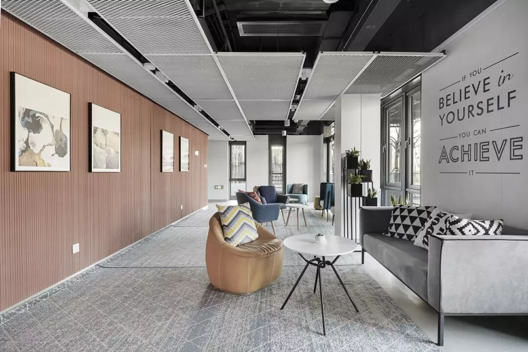 在空間劃分上,我們遵循城市綠色生態(tài)美學,充分利用創(chuàng)新技術進行模塊化設計,將裝配式建造、節(jié)能低碳等許多新理念應用到整個空間中去,將整體空間劃分成商務區(qū)、辦公區(qū)和休閑區(qū),具體到擁有獨立辦公室65個,辦公工位464個,會議室5個,以及水吧、咖啡廳、休息艙、茶室、電話亭等共享區(qū),我們想要脫離傳統(tǒng)辦公空間的單調枯燥,讓一站式的休閑服務和辦公完美結合,觸達現(xiàn)代人內心的深層需求,從而使整體設計方案在保持高品質的同時做到高效、低成本。