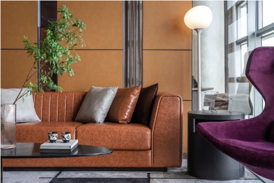 以寶格麗風(fēng)的橙色和黑色構(gòu)設(shè)起空間的精尚品位,同時(shí)通過(guò)薄暮紫和優(yōu)雅棕營(yíng)造舒適雅致的氛圍。