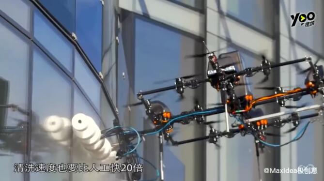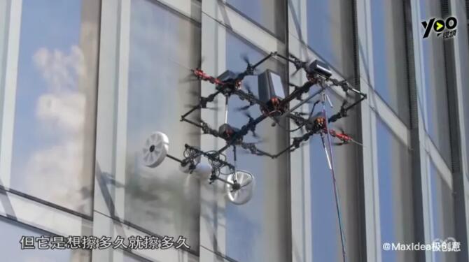▲無(wú)人機(jī)擦拭玻璃 輕松給玻璃幕墻來(lái)一套大保健 “蜘蛛人”有可能要失業(yè)了