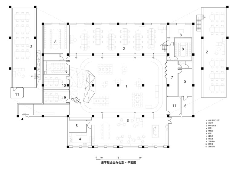 樂平基金會是一家以社會創(chuàng)新著稱的非營利機(jī)構(gòu)。在他們1100㎡的辦公空間中,我們提出的基礎(chǔ)理解是適度的身體活動對大腦有益:劇烈運(yùn)動通常會影響工作,但適量的活動則反而有益。在工作的同時進(jìn)行一定程度的輕微運(yùn)動,健康的效果堪比短暫的劇烈運(yùn)動。因此設(shè)計(jì)提供了大量邊工作邊活動的機(jī)會,豐富辦公模式,也增加休息的途徑。