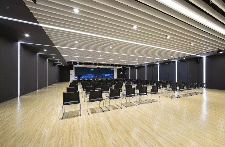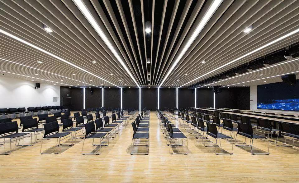 不同的空間內(nèi)容對應不同的材質(zhì)氛圍,從色彩到質(zhì)感,再到意象化的裝飾,我們依據(jù)大堂、會議、休息室、中庭等不同空間尺度與空間內(nèi)容營造新穎豐富、恰如其分的空間氛圍。溫暖的木色、混凝土板、白色大理石和白色乳膠漆為主要材料,其中報告廳大異其趣,優(yōu)雅高貴的深灰色布藝軟包與報告廳的相對集中和封閉性相得益彰。我們依托原有建筑空間序列,如大堂-電梯廳-等候區(qū)-多功能廳-VIP室-展廳,調(diào)整改變室內(nèi)設計的溫度與濃度,為原本純功能理性化的空間組織蒙上一層魅力面紗,讓功能化的“經(jīng)過”變?yōu)橐淮尾簧岬鸟v留與感受。