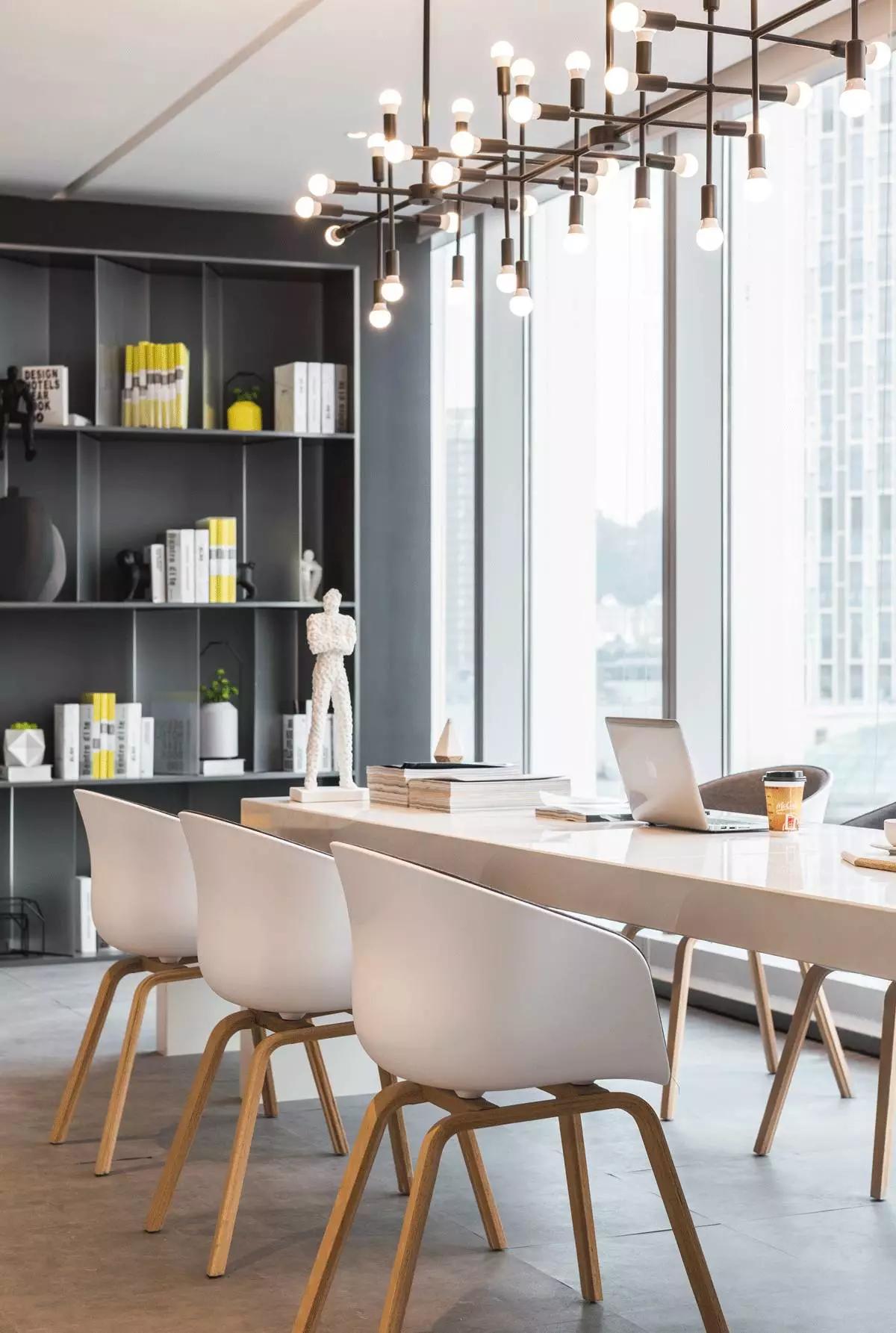 未來感十足的純白座椅與圓形吊燈設計,增強了空間延伸感,“思考者”白色模型的點綴,更好地襯托了整體氛圍,讓空間更顯純凈氣質;它是一杯Coffee的緩解之地,亦是一處自由交流的共享空間,綠植的細節(jié)設計,平添了歸屬感,若待在這樣的空間,人不由自主地便想去學習、進步。