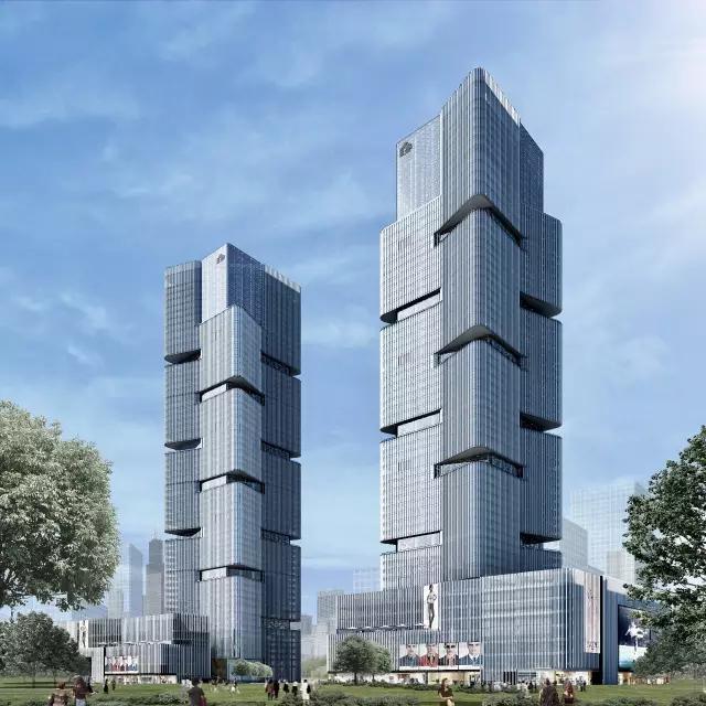 兩棟超高層大廈樓體采用交錯參差的結(jié)構(gòu),輕巧精致而又動感十足,柔和的圓弧風(fēng)車狀外形與層疊的建筑元素使整個建筑外觀高貴優(yōu)雅、輕靈通透,具有強(qiáng)烈的視覺沖擊力,成為一道令人驚嘆的城市天際線。
