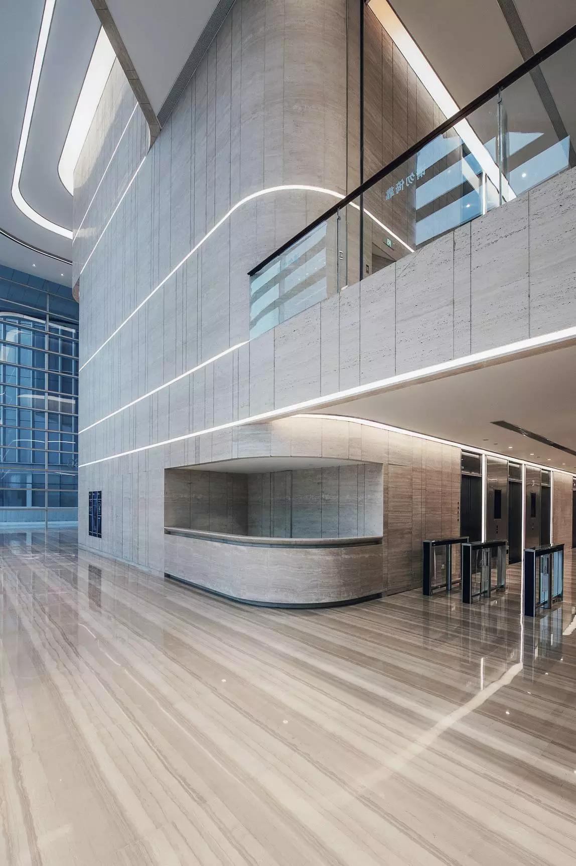 大堂設(shè)計(jì)將空間塑造作為首選,將形式、質(zhì)感、光與影等要素組合融入,創(chuàng)造性的表達(dá)空間的品質(zhì)和精神,放棄了多余的裝飾與造型,著重展現(xiàn)室內(nèi)空間與建筑空間的統(tǒng)一性。