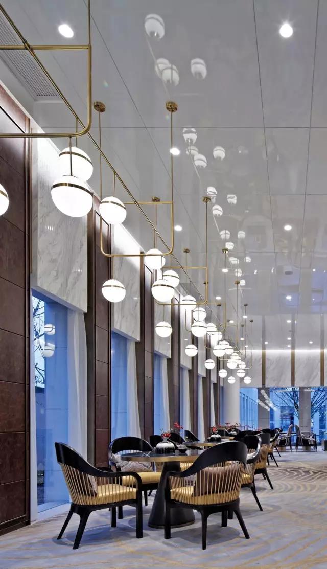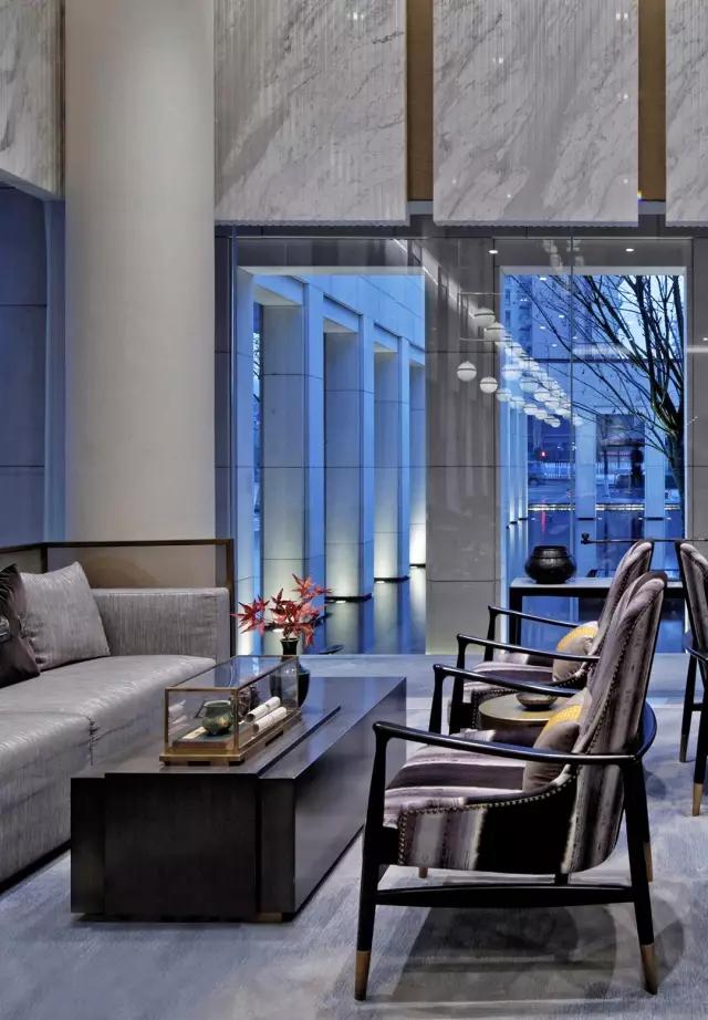 少幾分濃墨重彩,多幾分雅致清寧,灰色系恰好這樣不偏不倚,中正古典,為空間的雅致奠定了基礎(chǔ)。時不時的再加點黃色的點綴,大氣沉穩(wěn)不失生機活力。寫實的拱宸橋畔風景圖和柔軟似水波紋的大面積地毯剛?cè)岵搶崒Ρ?,詮釋著空間內(nèi)成竹在胸的東方意境。
