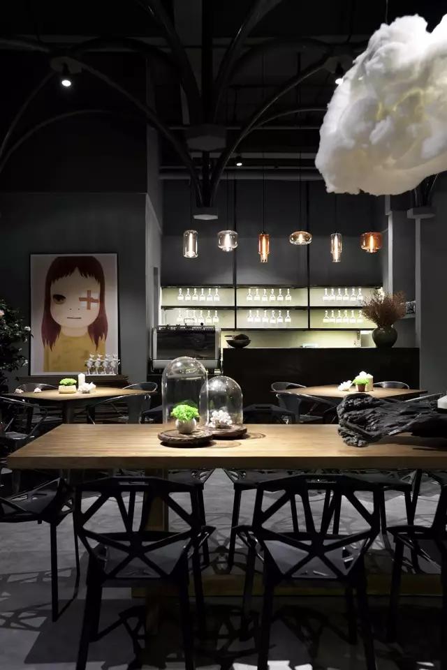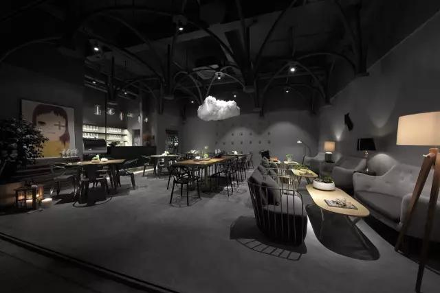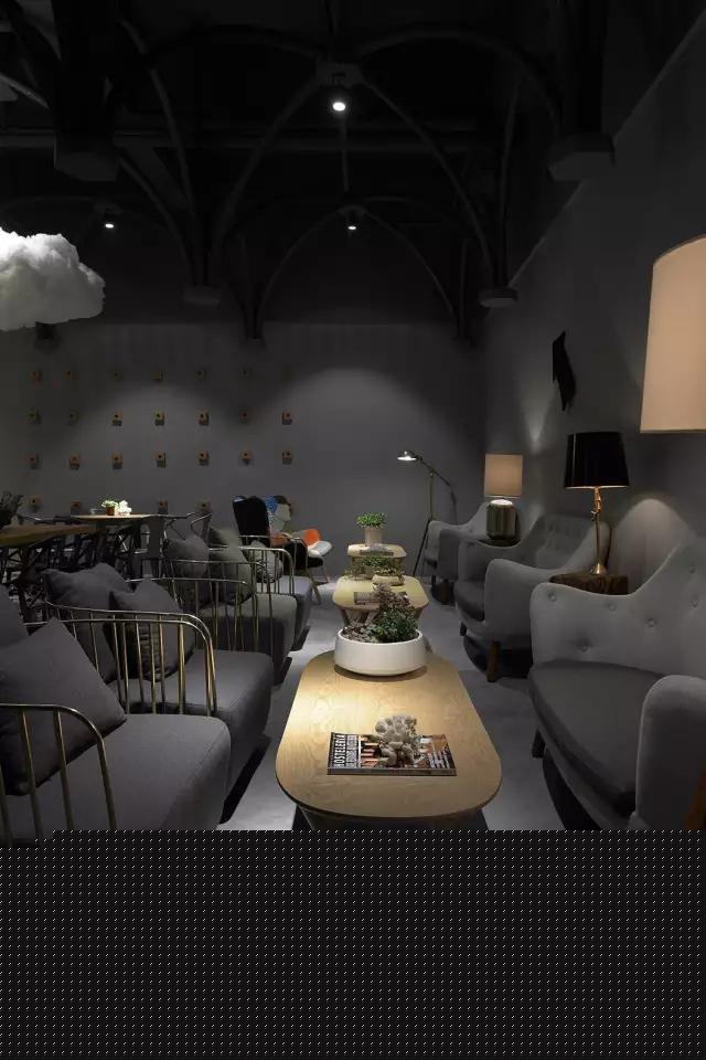 考慮到經(jīng)濟性、便捷的施工工藝與周期,清水混泥土成為了主要的材質(zhì)。由哥特式建筑引發(fā)的圓管結(jié)構設計,在空間中重組、穿插、演繹了一場哥特式感覺的舞臺劇,其高潮莫過于咖啡區(qū)的一朵白色漂浮的云。設計最大限度的融入了環(huán)保概念,不僅所有的材料都是可以回收利用的,而且定制安裝的方法既減少了現(xiàn)場的污染,也節(jié)省了施工周期。設計團隊選擇了很多具有趣味性的當代藝術作品來為空間注入時尚而放松的氣質(zhì),輔以層次豐富的燈光效果,將空間打造成了一個優(yōu)雅而又風趣的雅皮士的感覺。