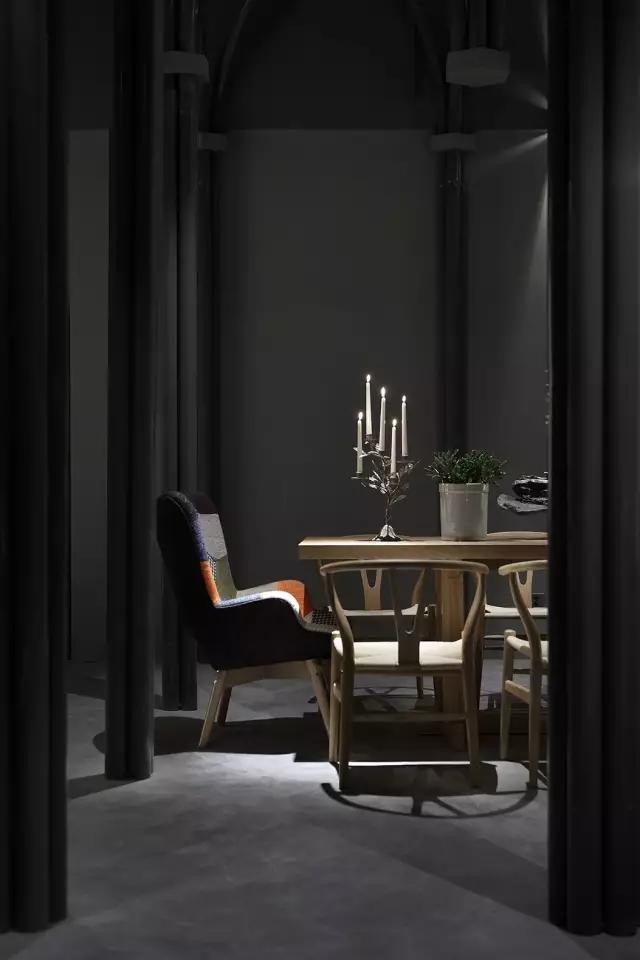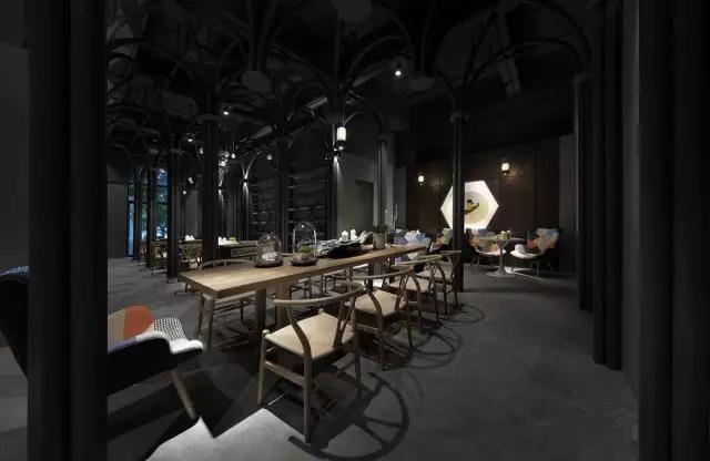 原建筑空間剛剛結(jié)束了破敗的工業(yè)廠房的狀態(tài),業(yè)主接手時還是一片狼藉。項目的運營團隊希望打造集餐飲區(qū)、咖啡區(qū)、音樂活動區(qū)及一個塔羅牌活動區(qū)為一體的復合空間。設計團隊從項目的主題概念中所散發(fā)的神秘色彩入手,希望在偏精神層面的建筑中汲取靈感,翻閱并走訪了大量的哥特式建筑,從挺拔向上的建筑空間結(jié)構中體會與神對話的力量感,然后將其移植到這個項目中,以當代的構成形式,向傳統(tǒng)建筑致敬。